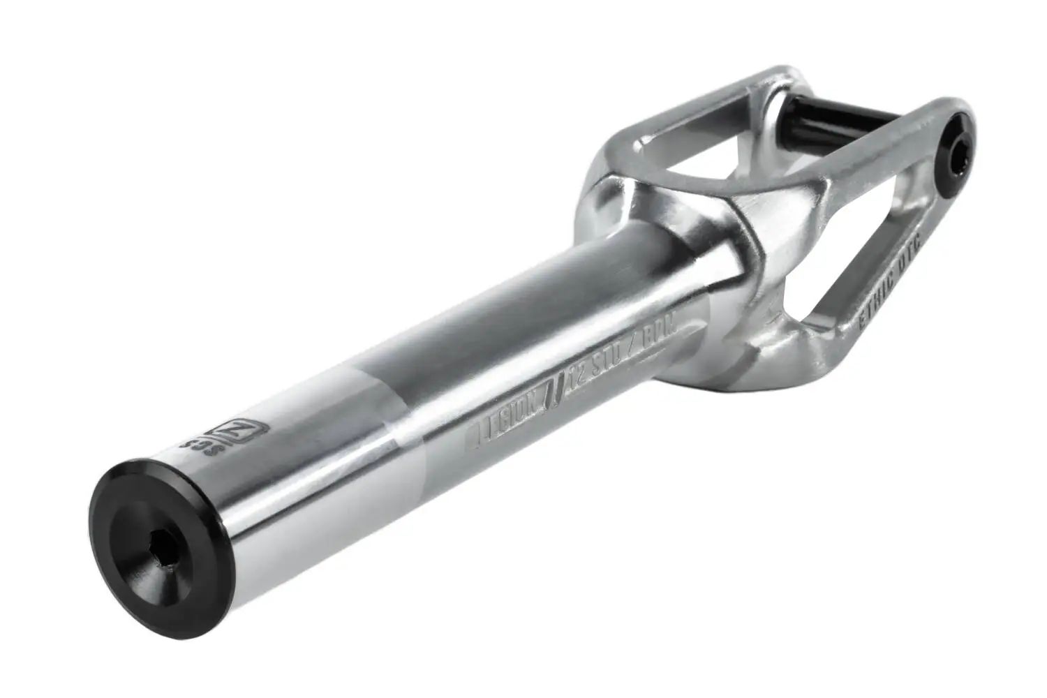 Ethic Legion 12STD V2 SCS is a well-performing one-piece pro scooter fork that can be used with various wheel diameters between 110mm and 125mm. This scooter fork is compatible with the most common wheel hub width, 24 mm, so you can accommodate most scooter wheels to it in regards to their width. The fork is threadless, which means its steerer tube has a smooth, thread-free outside surface and it needs a threadless headset to function.