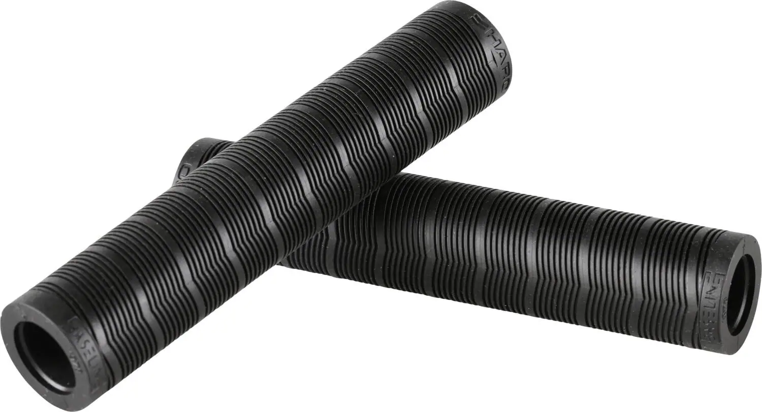 The Haro Baseline are freestyle BMX grips with a lot of value for money. Having flangeless grips will help you to grab your bar confidently when doing barspins. With a length of 16.3 cm, these long Haro grips will appeal to many riders, because they have plenty of space to move the hands around when performing tricks. The soft rubber material gives a nice comfy grip for cruising or trick sessions. You get a set of bar-ends that are compatible with aluminum, steel and grade 9 titanium included with the grips, so you can round off your bar and extend the lifespan of both your bar and your new set of grips.
