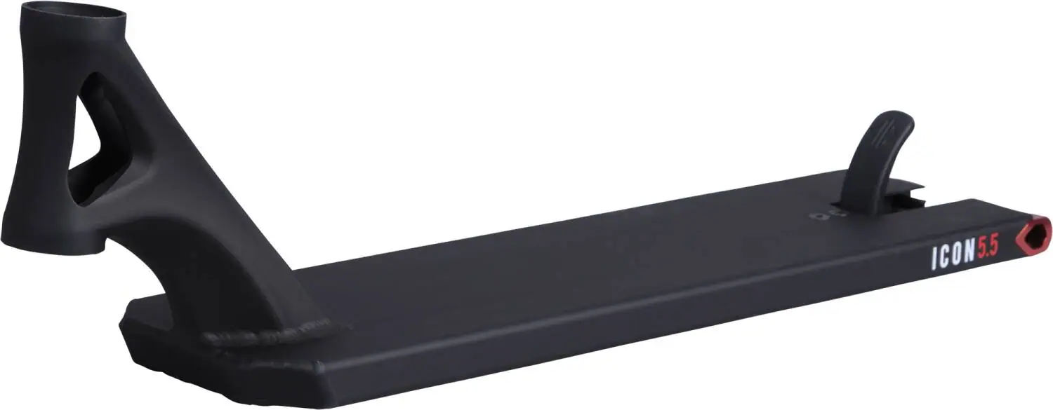 The Drone Icon 5.5″ is a well-performing pro scooter deck, and it is made from light yet durable Aluminum 6061-T6. Get ready to conquer the streets thanks to the box-cut shape of this deck, which offers you stable grinds, more foot space for landings and no need for pegs. This Drone scooter deck is compatible with 110mm and 120mm wheels.