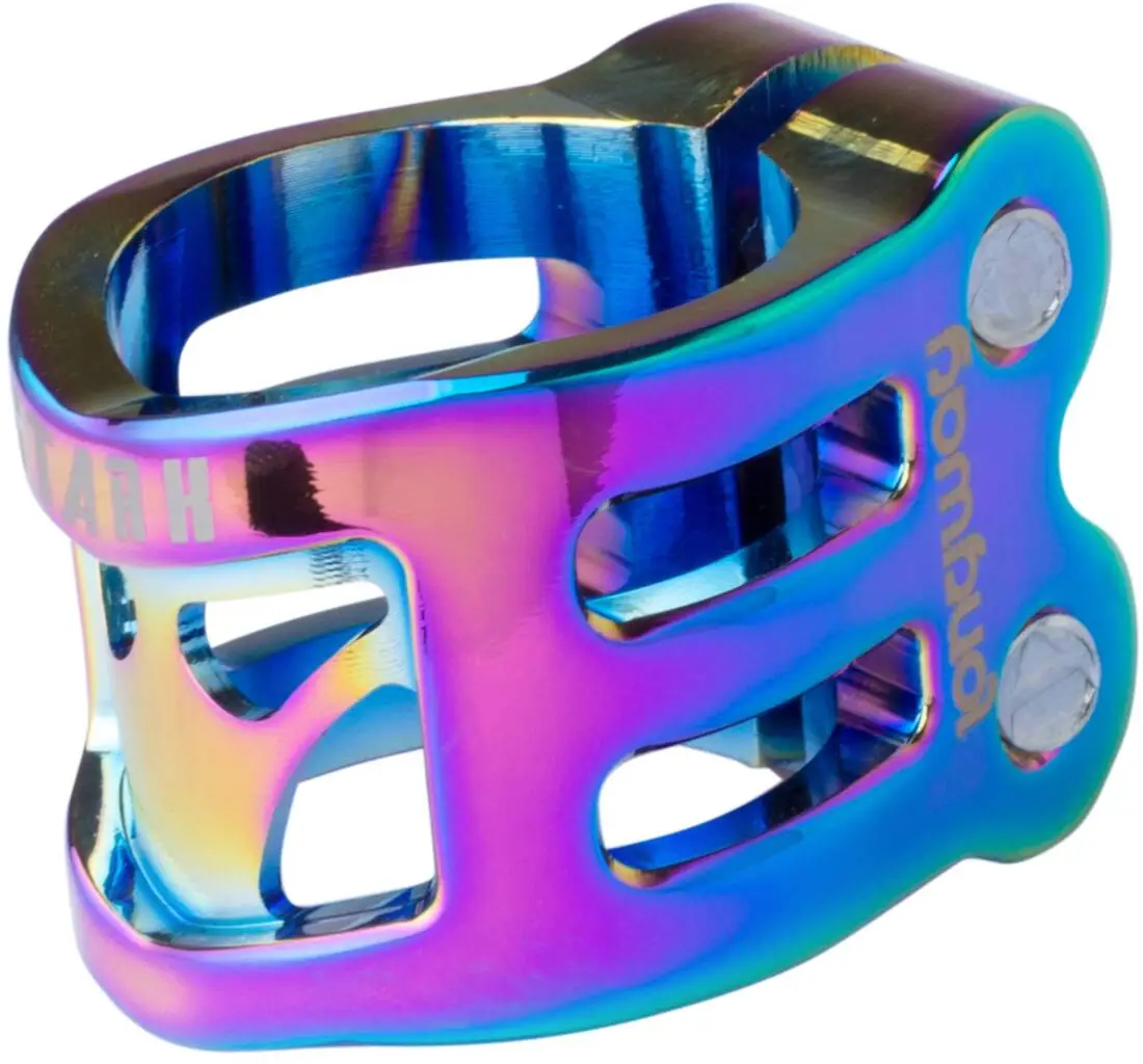 The Longway Stark is a well-performing double clamp designed for stunt scooters. It comes with a shim so that it can be mounted on both regular 32 mm bars and oversized 35 mm bars. This Longway scooter clamp is an optimal choice for most scooter setups without SCS compression.