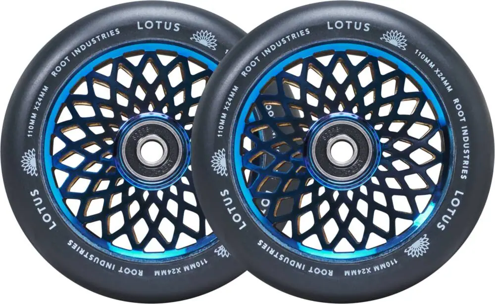 New and regular-sized Lotus Pro scooter wheels in a clean design