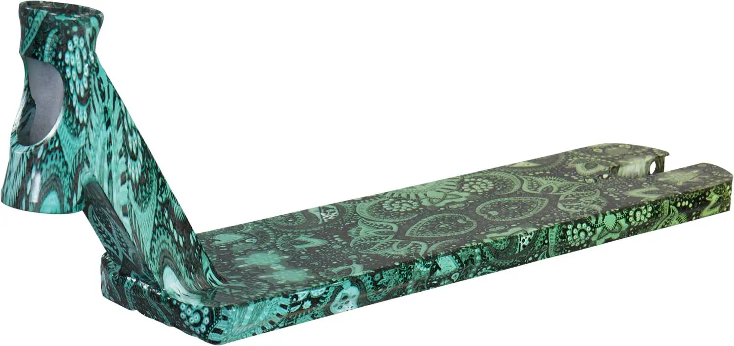 The Lucky Prospect 2022 is a well-performing pro scooter deck, and it is made from light Aluminum material. If parks are your passion and you’re into whip and flare tricks, then the peg-cut shape is for you. As the name suggests, it has the perfect shape to host pegs for relentless grinds. This Lucky scooter deck is compatible with 110mm, 115mm and 120mm wheels.