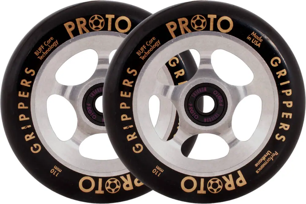 The original PROTO pro scooter wheel, Grippers are as fast, smooth, and strong as they come. The spoked core provides an excellent strength to weight ratio.