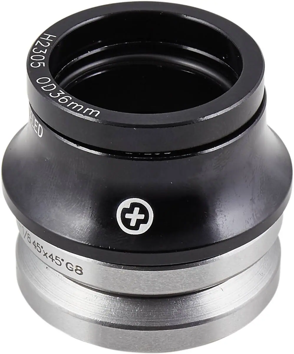 You get an integrated headset with good rolling FSA bearings, colorful top cap and included is one 5mm spacer