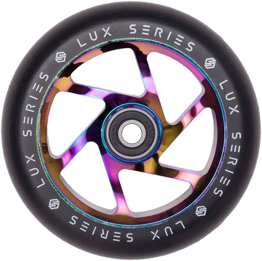 This is the Lux pro scooter wheel from the brand Striker. Having a spoked core that is made of 6061 aluminum, the wheel is classic looking and it has all the right properties such as low weight and durability. Moreover the durometer of 88A attests to the wheel’s perfect mix of grip and speed, making it great for both street and park riding. Striker has designed the wheel with a round profile to give you a stable wheel with less friction and thereby adding speed to your performances.
