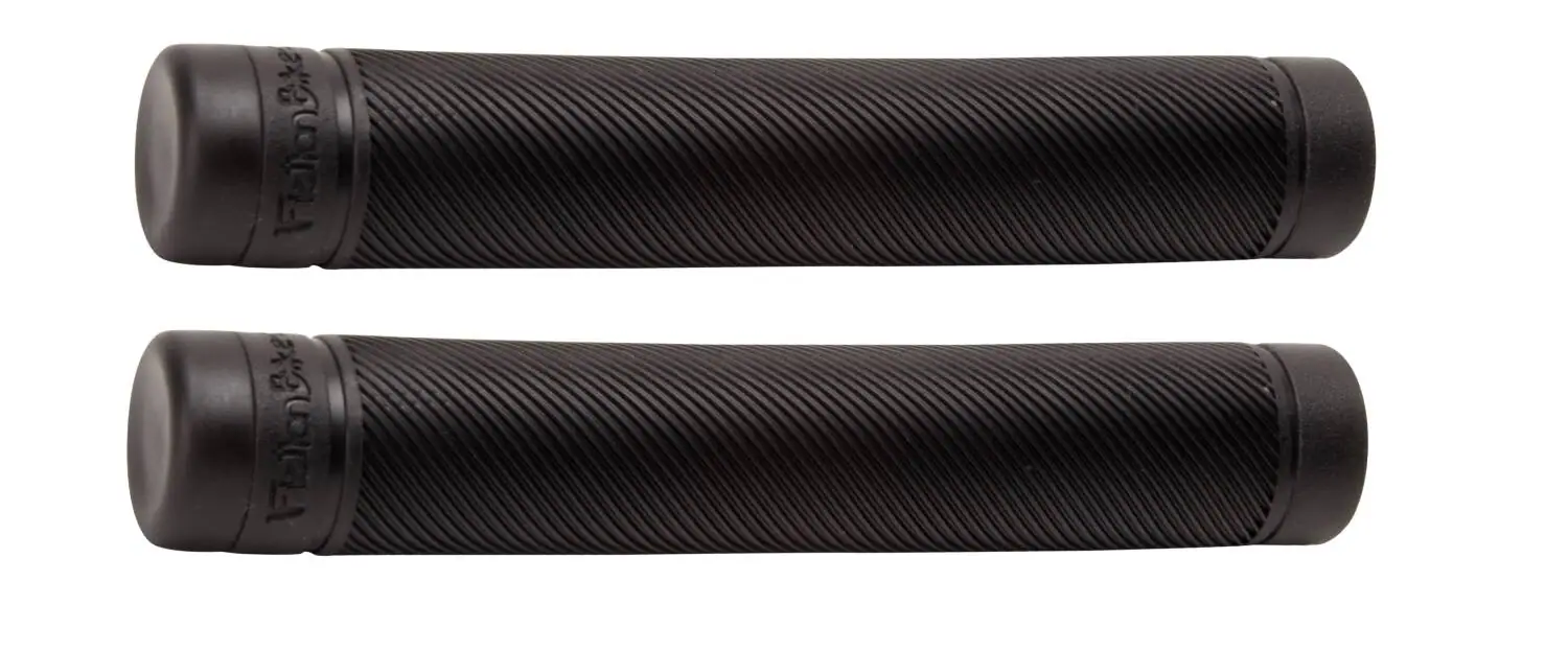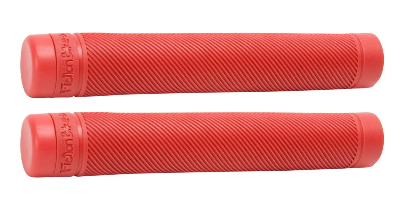 The Fiction Troop are freestyle BMX grips with a lot of value for money. Having flangeless grips will help you to grab your bar confidently when doing barspins. With a length of 16 cm, these long Fiction grips will appeal to many riders, because they have plenty of space to move the hands around when performing tricks. The medium hardness of the rubber gives a great mix of comfort and durability. To round off your bar and extend the lifespan of both the bar and grips, you get a set of bar-ends that are compatible with aluminum, steel and grade 9 titanium bars along with the grips.